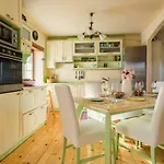 The Casa Romantica Vilanija offers rooms with a patio and a dressing room complete with ironing facilities and climate control. They are furnished with a stone fireplace and sound-proofed windows, and also come with tea and coffee making facilities. The bathroom is equipped with a bidet, a walk-in shower, and an additional toilet, along with hairdryers and free toiletries.